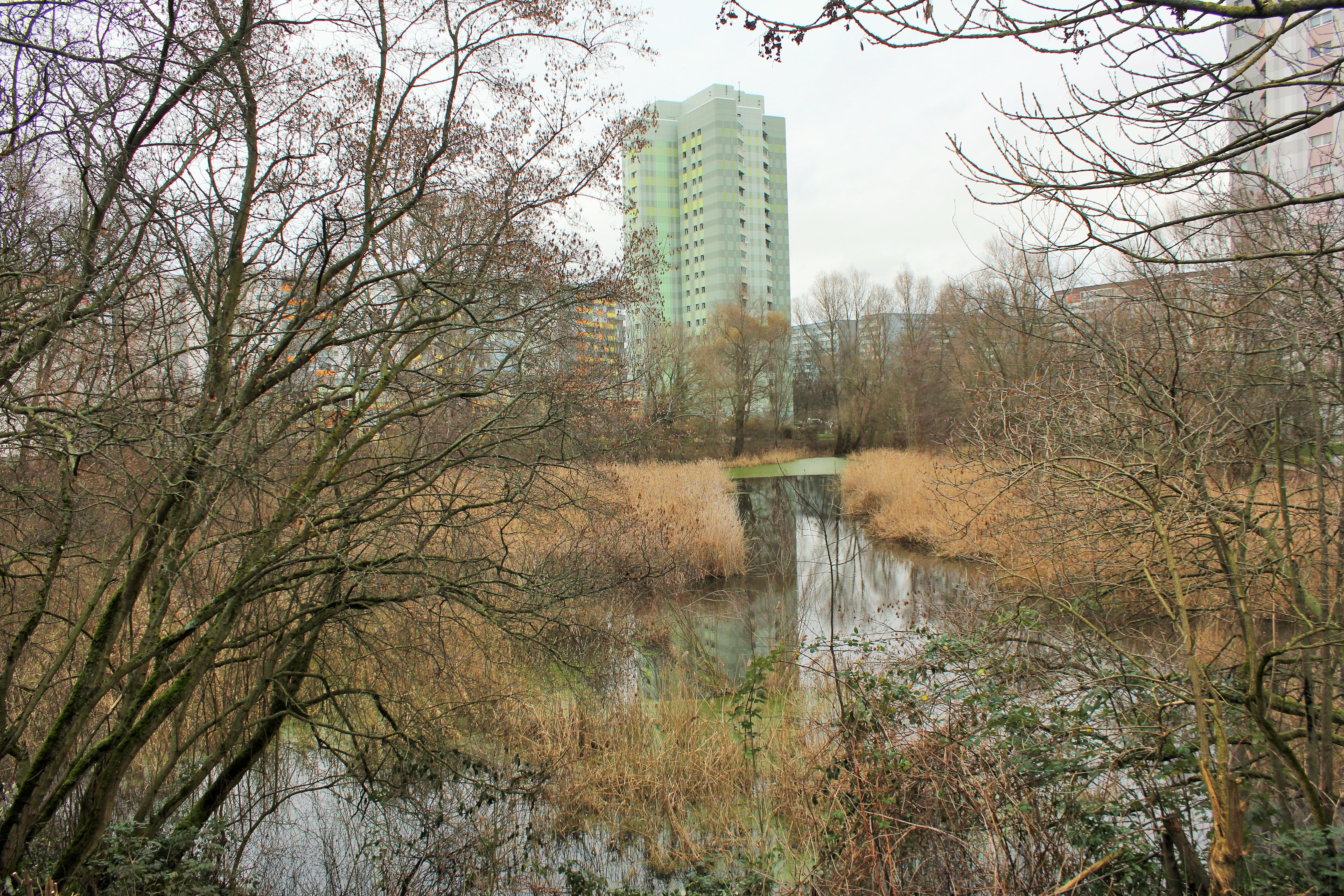 Das Bezirksamt räumt ein: „Das überwiegend durch das Regenwasser gespeiste Gewässer zeigt erhöhte Nährstoffwerte auf.“ Das Gewässer sei als hypertroph eingestuft. Das heißt, dass in ihm ein starkes Pflanzenwachstum stattfindet. „Die Wasserqualität wird durch die direkte Einleitung ohne Vorreinigung beeinträchtigt“, so das Bezirksamt weiter. „Anderseits fehlt insgesamt Wasser, was dazu führt, dass das Gewässer insbesondere in der Sommerperiode schlecht durchmischt ist und Sauerstoffmangel aufweist. Weiterhin ist grundsätzlich eine zunehmende Verlandung des Gewässers zu beobachten. Diesem Prozess einhergehend verringert sich die offene Wasserfläche, was die Entwicklung von Amphibien negativ beeinflusst.“