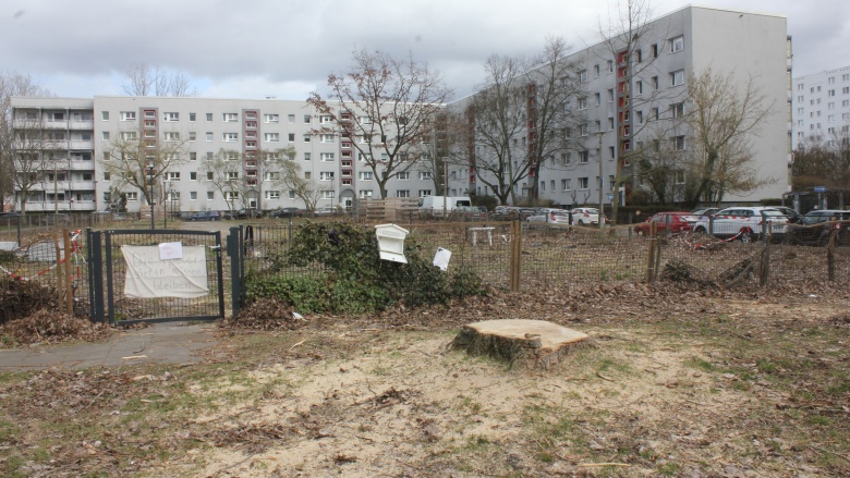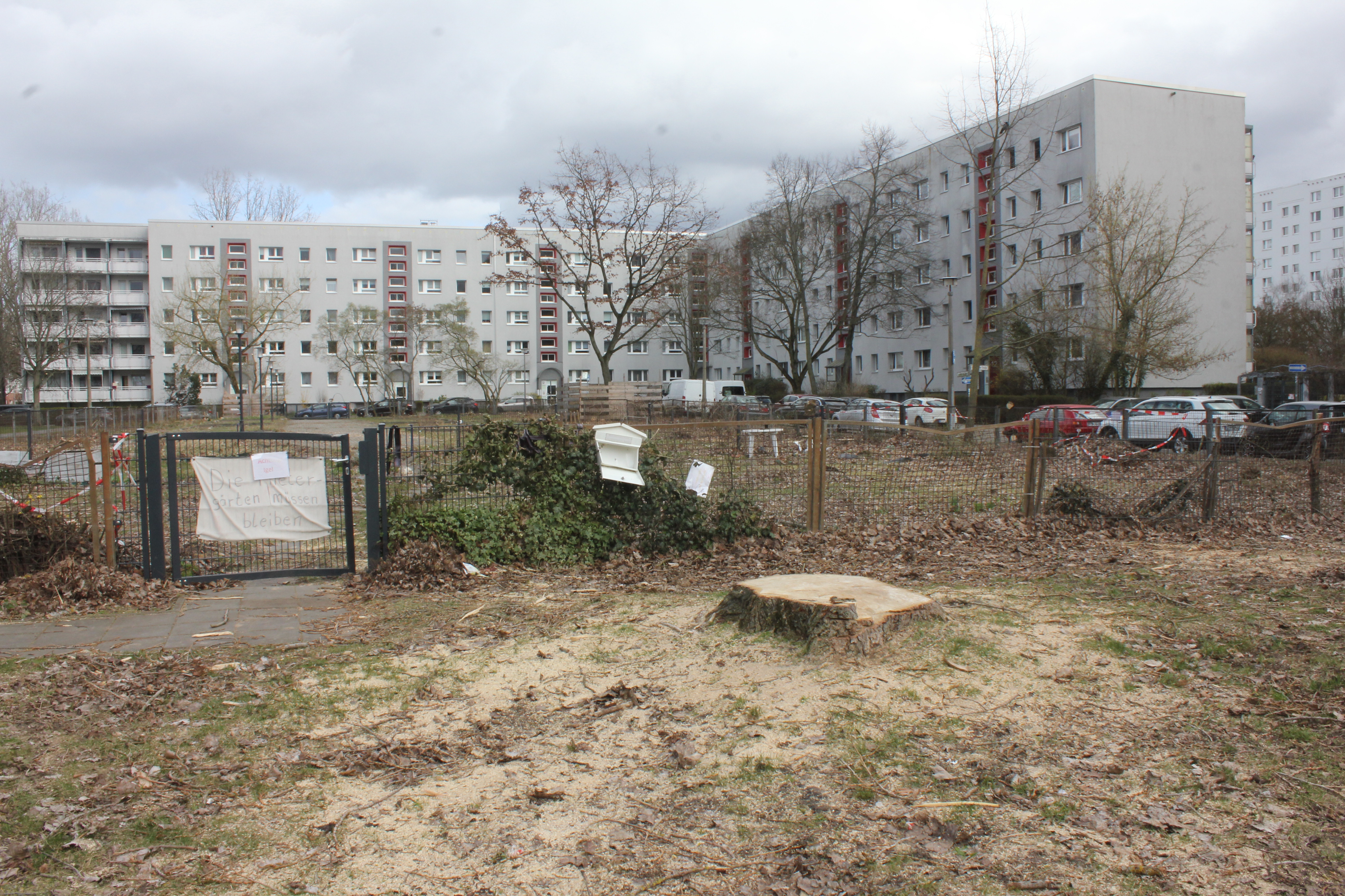 Im Zuge der Baufeldfreimachung ließ die Howoge im Bereich Joachimsthaler Straße/ Plauener Straße vierzig Bäume fällen.